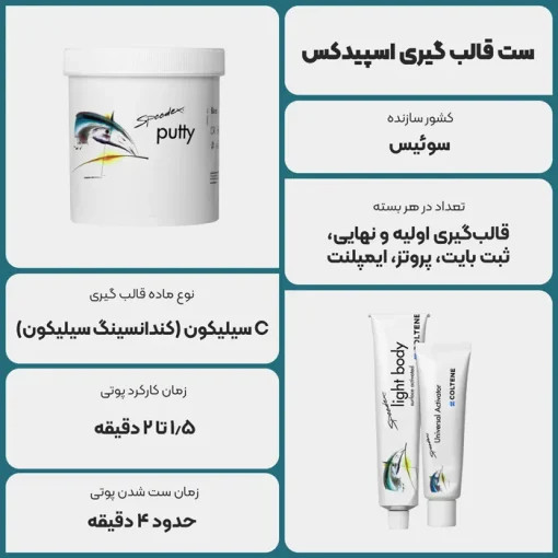 - Speedex Putty (پوتی): برای مرحله اول قالبگیری، با قوام بالا و ثبات فوقالعاده.